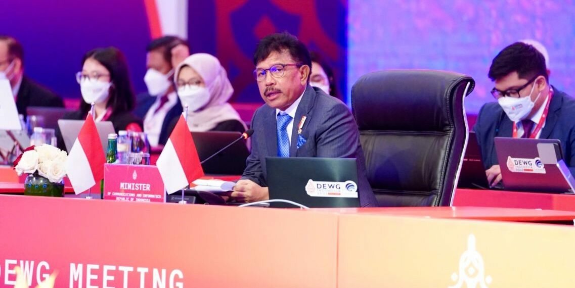 Menteri Komunikasi dan Informatika (Menkominfo) Johnny G. Plate menyambut para delegasi Industri Task Force dalam pembukaan Digital Economy Working Group (DEWG) Presidensi G20 Indonesia 2022. Ia menyapa para delegasi dengan memperkenalkan pameran platform digital Indonesia.